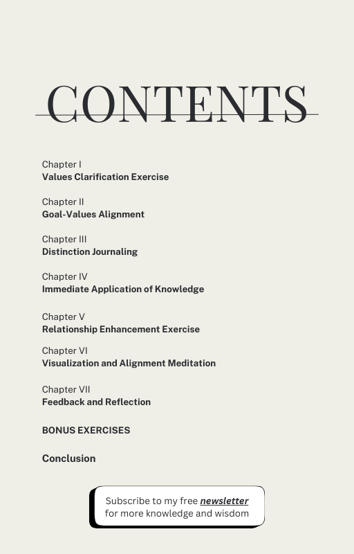 - Proven Exercises for Clarity: Dive into exercises that clarify your values, align your goals, and navigate life's decisions with confidence. Uncover the power of making choices that resonate with your authentic self.
